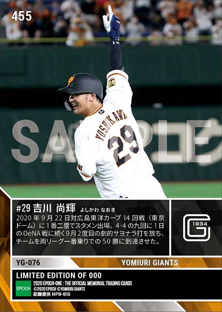 公式【吉川尚輝】今月2度目のサヨナラ打(20.9.22) のカードを買うならエポックワン!税込・送料無料!