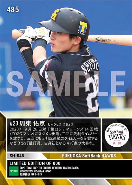 公式【周東佑京】2打席連続タイムリー含む3安打猛打賞4打点(20.9.26) のカードを買うならエポックワン!税込・送料無料!