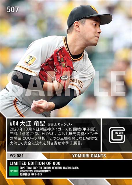 公式【大江竜聖】絶体絶命のピンチを救う完璧リリーフで今季3勝目(20.10.4) のカードを買うならエポックワン!税込・送料無料!