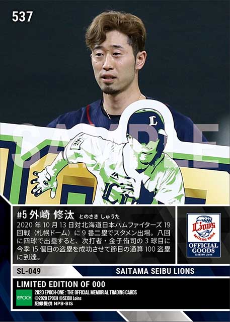 公式【外崎修汰】通算100盗塁達成(20.10.13) のカードを買うならエポックワン!税込・送料無料!