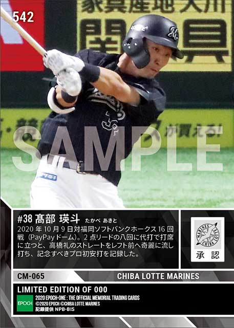 公式RC【髙部瑛斗】プロ初安打(20.10.9) のカードを買うならエポックワン!税込・送料無料!