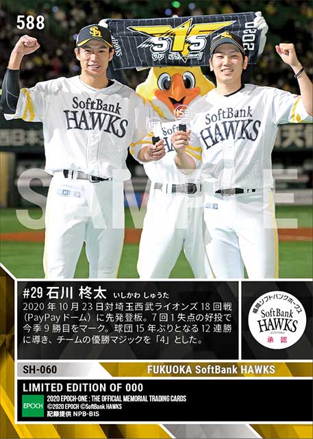 公式【石川柊太】球団15年ぶり12連勝に導く今季9勝目(20.10.23) のカードを買うならエポックワン!税込・送料無料!