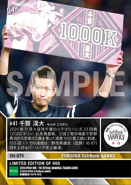 公式【千賀滉大】通算1000奪三振達成(パ・リーグ史上最速)(20.11.4) のカードを買うならエポックワン!税込・送料無料!