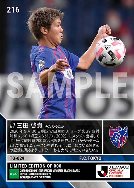 公式【三田啓貴】J1通算200試合出場(20.9.30) のカードを買うならエポックワン!税込・送料無料!