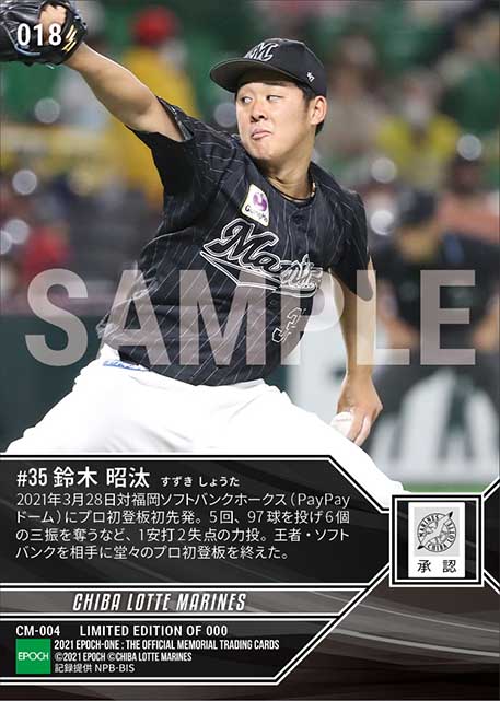 公式RC【鈴木昭汰】プロ初登板初先発(21.3.28) のカードを買うならエポックワン!税込・送料無料!