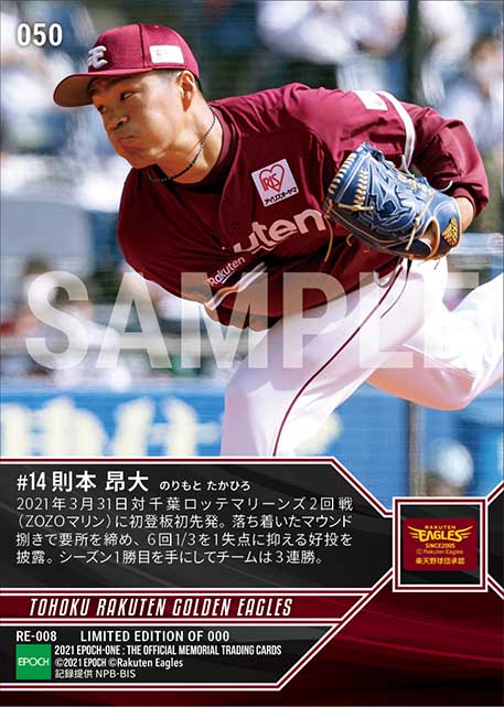 公式【則本昂大】今季初登板初勝利(21.3.31) のカードを買うならエポックワン!税込・送料無料!
