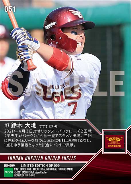 公式【鈴木大地】先制タイムリー含む2安打2打点(21.4.3) のカードを買うならエポックワン!税込・送料無料!