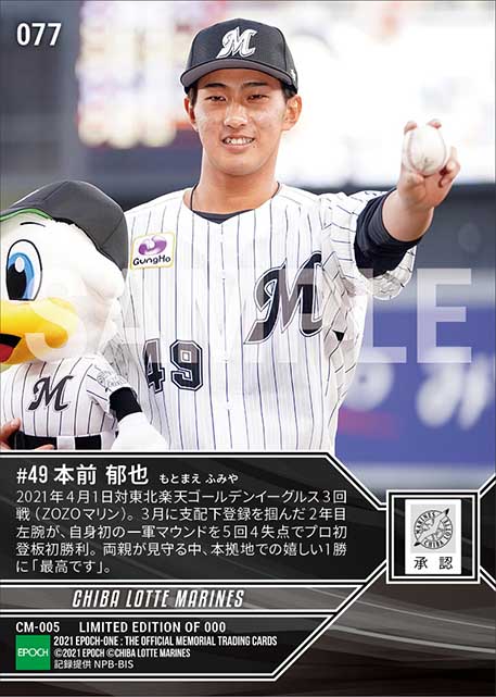 公式【本前郁也】プロ初登板初先発初勝利(21.4.1) のカードを買うならエポックワン!税込・送料無料!