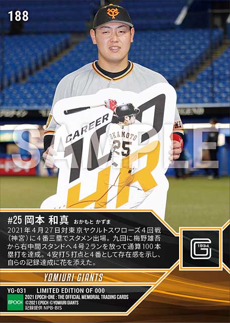 公式【岡本和真】通算100本塁打達成(球団高卒史上最速)(21.4.27) のカードを買うならエポックワン!税込・送料無料!
