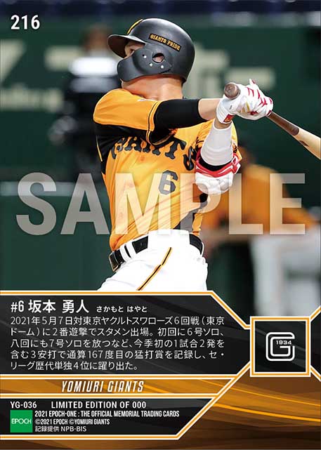 公式【坂本勇人】通算167度目の猛打賞(セ・リーグ歴代単独4位)(21.5.7) のカードを買うならエポックワン!税込・送料無料!
