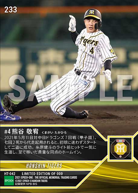 公式【熊谷敬宥】代走としての役割完遂(盗塁&ヘッドスライディング生還)(21.5.11) のカードを買うならエポックワン!税込・送料無料!