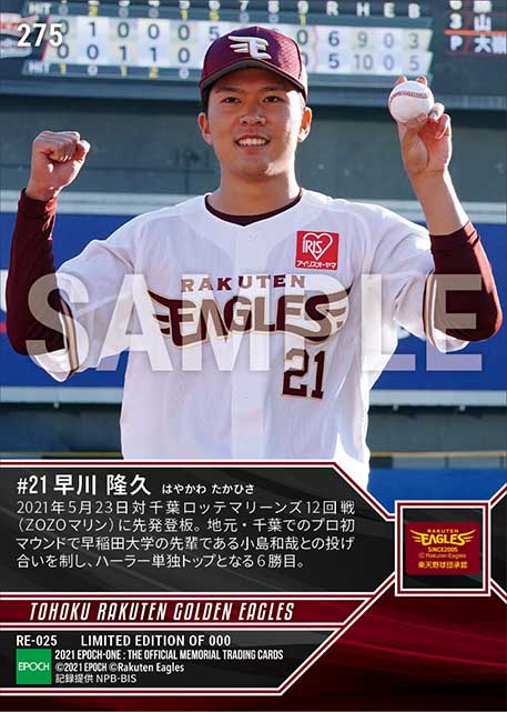 公式RC【早川隆久】ハーラー単独トップとなる6勝目(21.5.23) のカードを買うならエポックワン!税込・送料無料!