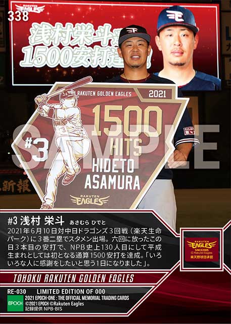 公式【浅村栄斗】通算1500安打達成(21.6.10) のカードを買うならエポックワン!税込・送料無料!