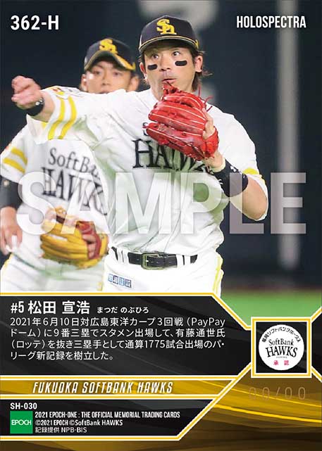 公式※ホロスペクトラ【松田宣浩】三塁手として通算1775試合出場(パ・リーグ歴代最多記録更新)(21.6.10) のカードを買うならエポックワン!税込・送料無料!