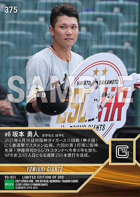 公式【坂本勇人】通算250本塁打達成(21.6.19) のカードを買うならエポックワン!税込・送料無料!