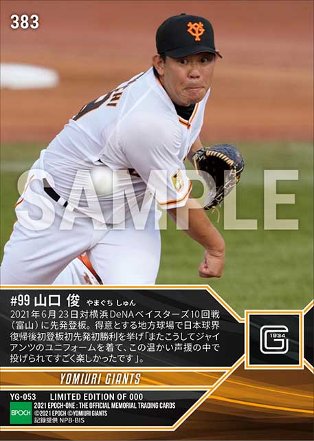 公式【山口 俊】日本復帰初登板で642日ぶりとなるNPB勝利投手(21.6.23) のカードを買うならエポックワン!税込・送料無料!