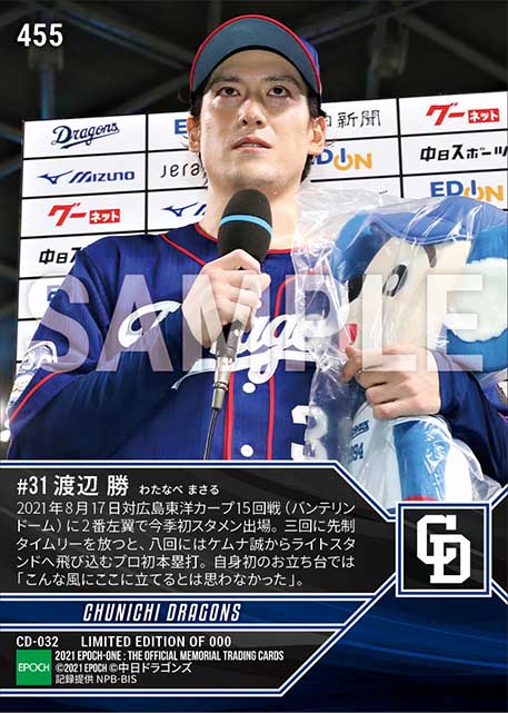 公式【渡辺 勝】プロ初本塁打含む2安打2打点(21.8.17) のカードを買うならエポックワン!税込・送料無料!