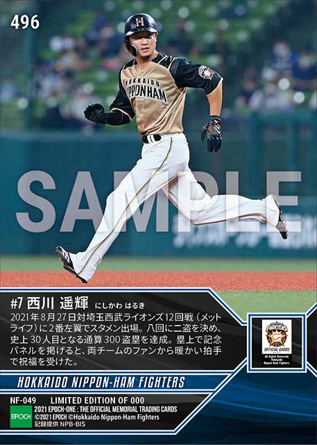 公式【西川遥輝】通算300盗塁達成(21.8.27) のカードを買うならエポックワン!税込・送料無料!