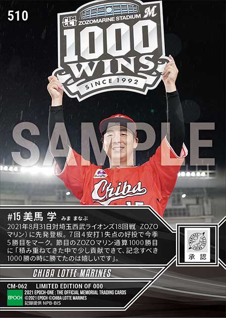公式【美馬 学】ZOZOマリン通算1000勝をもたらす今季5勝目(21.8.31) のカードを買うならエポックワン!税込・送料無料!