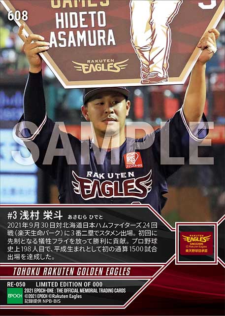 公式【浅村栄斗】通算1500試合出場(21.9.30) のカードを買うならエポックワン!税込・送料無料!