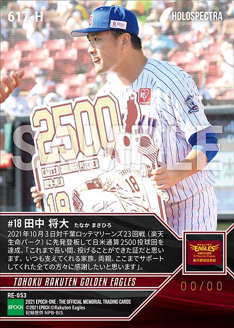 公式※ホロスペクトラ【田中将大】日米通算2500投球回達成(21.10.3) のカードを買うならエポックワン!税込・送料無料!