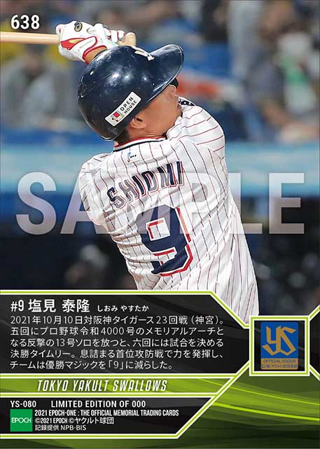 公式【塩見泰隆】プロ野球令和4000号(優勝マジック「9」)(21.10.10) のカードを買うならエポックワン!税込・送料無料!