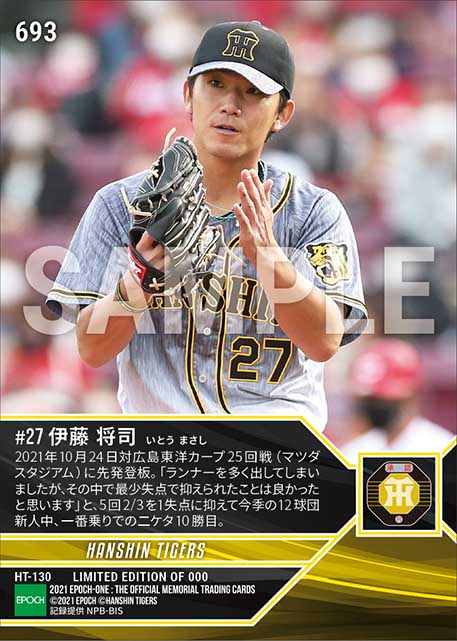 公式RC【伊藤将司】12球団新人最速で二ケタ勝利達成(21.10.24) のカードを買うならエポックワン!税込・送料無料!