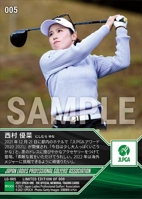 公式【西村優菜】JLPGAアワード2020-2021 JLPGA 資生堂 Beauty of the Year(21.12.21) のカードを買うならエポックワン!税込・送料無料!