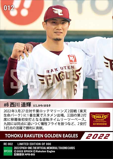 公式【西川遥輝】移籍後初安打含む2安打3打点(22.3.27) のカードを買うならエポックワン!税込・送料無料!