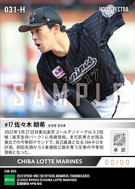 公式※ホロスペクトラ【佐々木朗希】自己最速更新164キロ(22.3.27) のカードを買うならエポックワン!税込・送料無料!