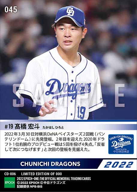 公式【髙橋宏斗】プロ初先発初登板(22.3.30) のカードを買うならエポックワン!税込・送料無料!