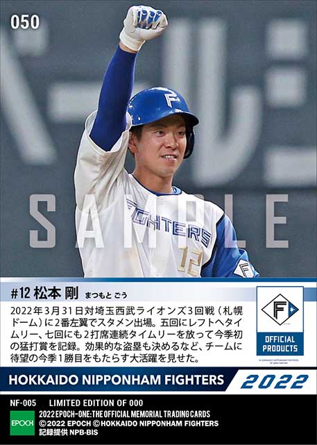 公式【松本 剛】2本のタイムリー含む今季初猛打賞(22.3.31) のカードを買うならエポックワン!税込・送料無料!