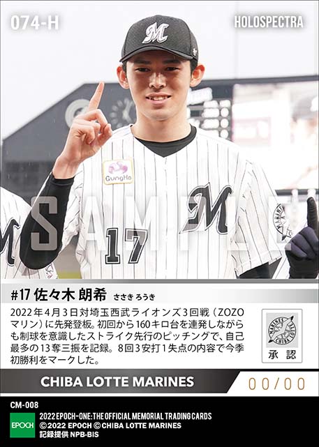 公式※ホロスペクトラ【佐々木朗希】自己最多13奪三振の快投で今季初勝利(22.4.3) のカードを買うならエポックワン!税込・送料無料!
