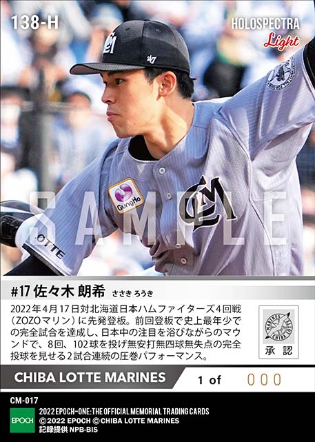 公式※ホロスペクトラLight【佐々木朗希】2試合連続歴史的快投(8回パーフェクトピッチング)(22.4.17) のカードを買うならエポックワン!税込・送料無料!