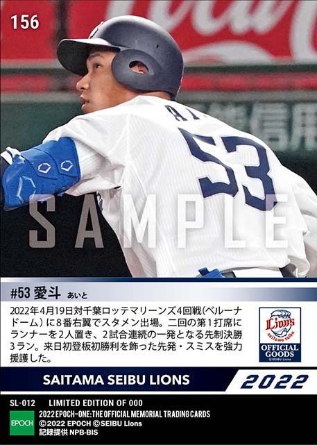 公式【愛斗】2戦連発となる2号決勝3ラン(22.4.19) のカードを買うならエポックワン!税込・送料無料!