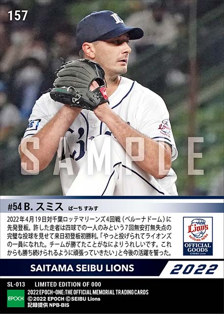 公式【スミス】7回無安打無失点の快投で来日初登板初勝利(22.4.19) のカードを買うならエポックワン!税込・送料無料!