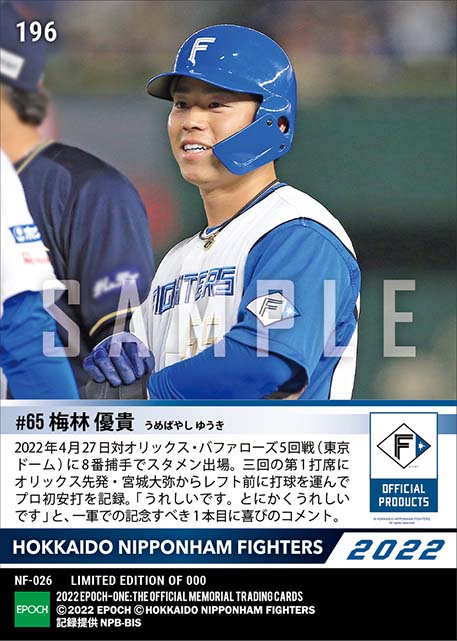 公式【梅林優貴】プロ初スタメン初安打(22.4.27) のカードを買うならエポックワン!税込・送料無料!