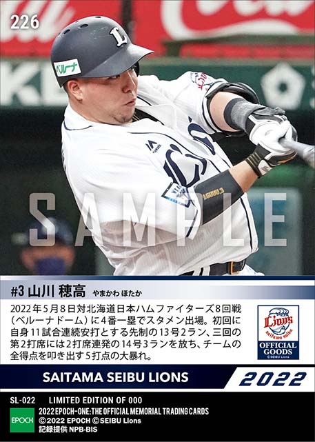 公式【山川穂高】絶好調を維持する2打席連続本塁打(22.5.8) のカードを買うならエポックワン!税込・送料無料!