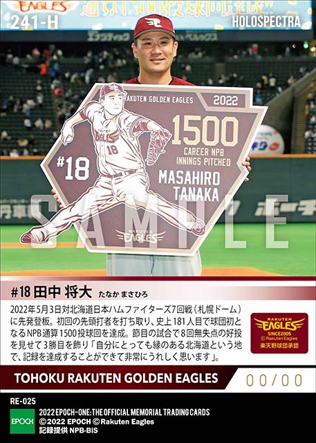 公式※ホロスペクトラ【田中将大】球団史上初NPB通算1500投球回達成(22.5.3) のカードを買うならエポックワン!税込・送料無料!
