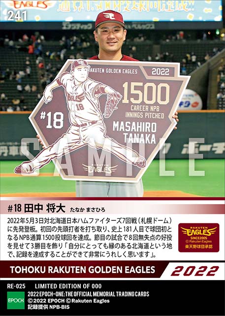 公式【田中将大】球団史上初NPB通算1500投球回達成(22.5.3) のカードを買うならエポックワン!税込・送料無料!