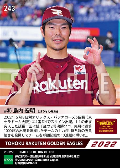 公式【島内宏明】10連勝呼ぶ延長十回決勝ソロ(22.5.8) のカードを買うならエポックワン!税込・送料無料!