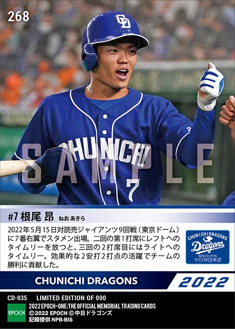 公式【根尾 昂】2打席連続タイムリーで勝利に貢献(22.5.15) のカードを買うならエポックワン!税込・送料無料!