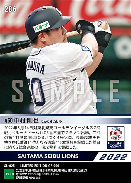 公式【中村剛也】2試合連続本塁打(22.5.14) のカードを買うならエポックワン!税込・送料無料!