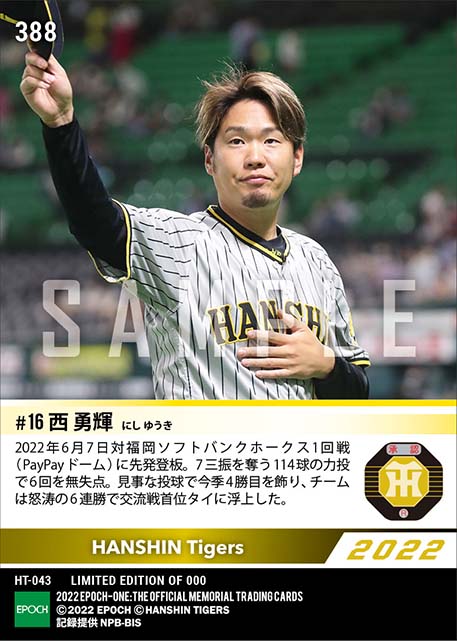 公式【西 勇輝】6連勝に導く今季4勝目(22.6.7) のカードを買うならエポックワン!税込・送料無料!