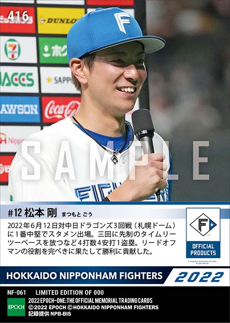 公式【松本 剛】先制タイムリー含む4打数4安打(22.6.12) のカードを買うならエポックワン!税込・送料無料!