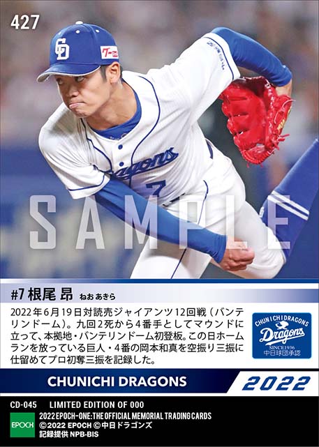 公式【根尾 昂】本拠地初登板プロ初奪三振(22.6.19) のカードを買うならエポックワン!税込・送料無料!