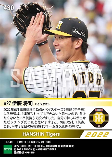 公式【伊藤将司】5連勝に導く今季2度目の完投勝利(22.6.18) のカードを買うならエポックワン!税込・送料無料!
