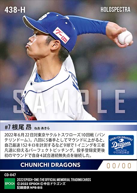 公式※ホロスペクトラ【根尾 昂】自己最速152キロを計測する1回パーフェクトピッチング(22.6.22) のカードを買うならエポックワン!税込・送料無料!