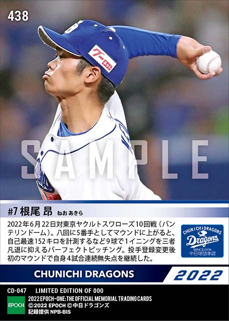 公式【根尾 昂】自己最速152キロを計測する1回パーフェクトピッチング(22.6.22) のカードを買うならエポックワン!税込・送料無料!