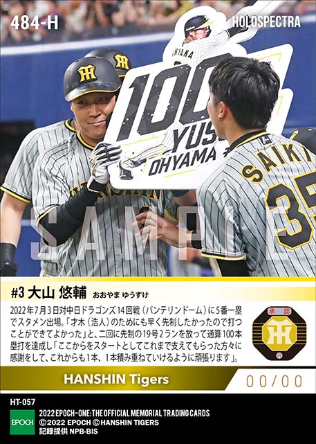 公式※ホロスペクトラ【大山悠輔】先制決勝弾で通算100本塁打達成(22.7.3) のカードを買うならエポックワン!税込・送料無料!